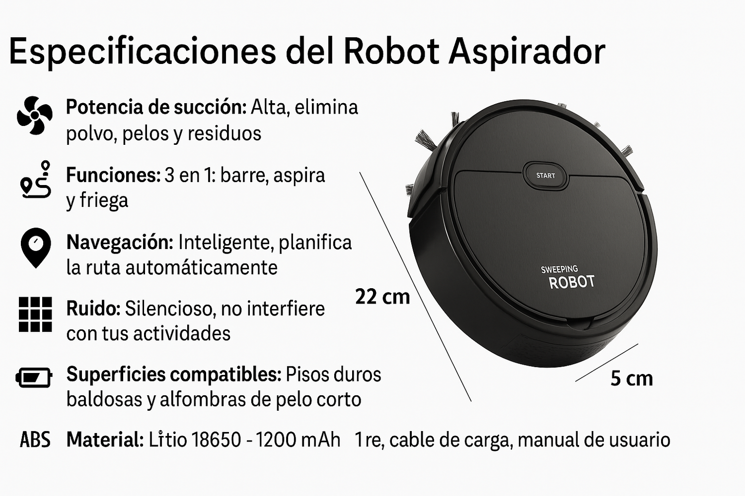 Funciona en baldosas, pisos de madera y alfombras de pelo corto sin dificultad.